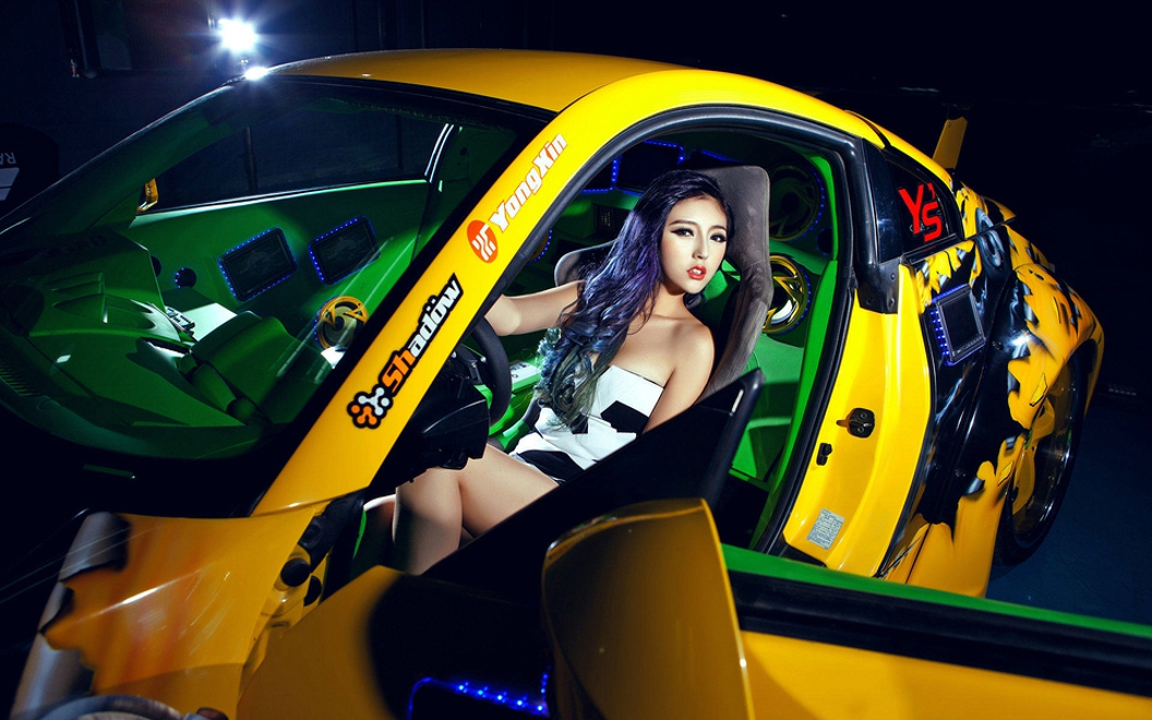 改装车惹火冷艳美女车模美腿高跟鞋火辣妖艳销魂诱人写真