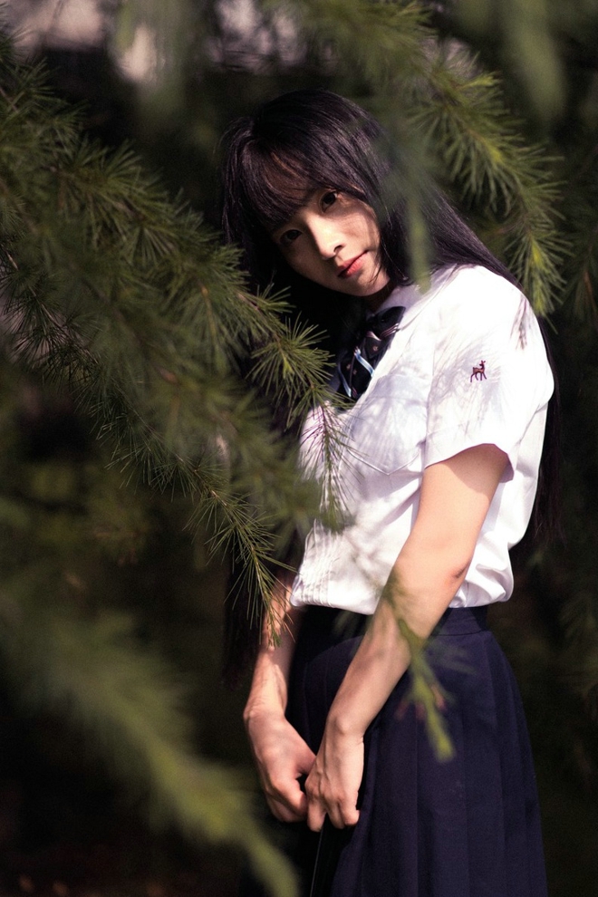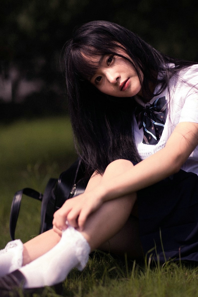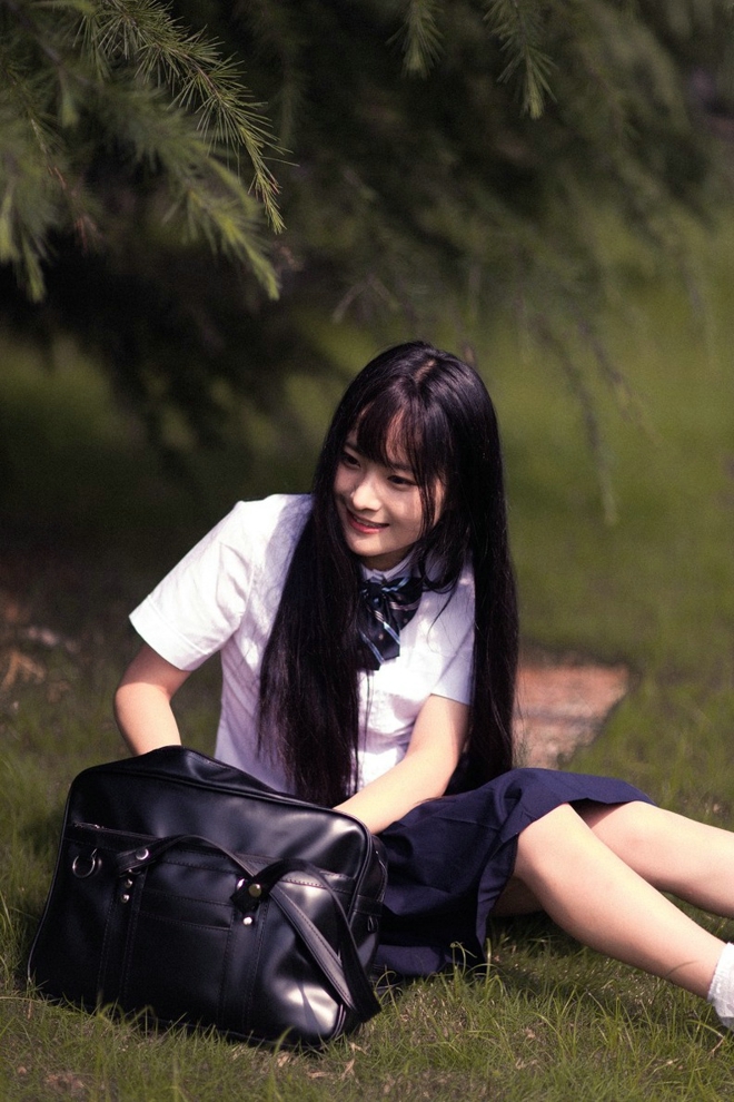 清纯阳光靓丽直发美女学生装短裙清新户外娇巧甜美阳光唯美写真